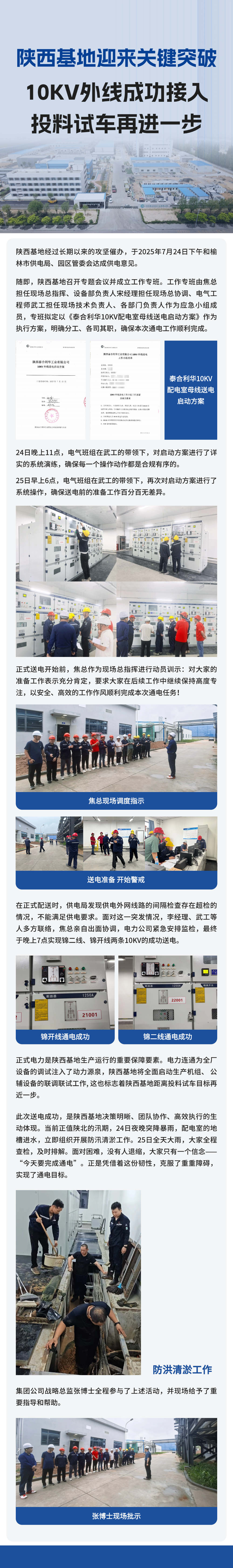 上周,陜西基地迎來重要里程碑——10KV外線電力成功接入!