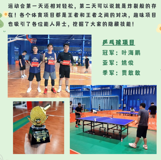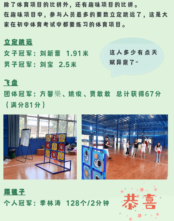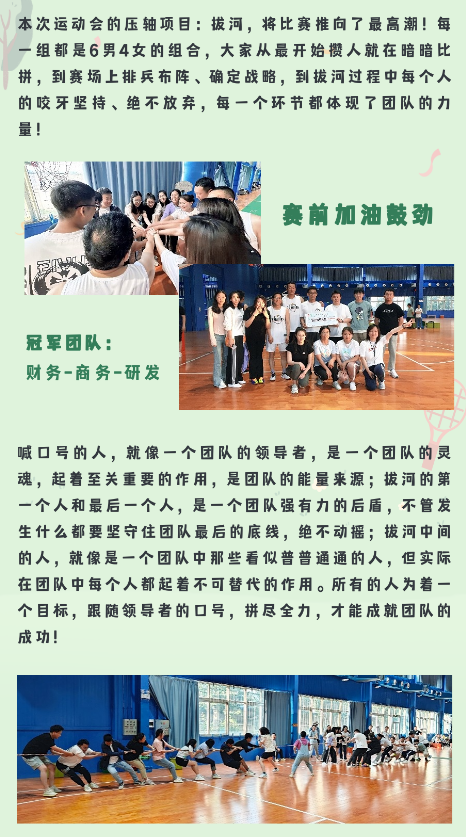 相信通過這次運(yùn)動(dòng)會(huì),大家在合作和對抗中都對其他人有了新的認(rèn)知,在未來的工作和生活中,能夠更加融洽更加默契!